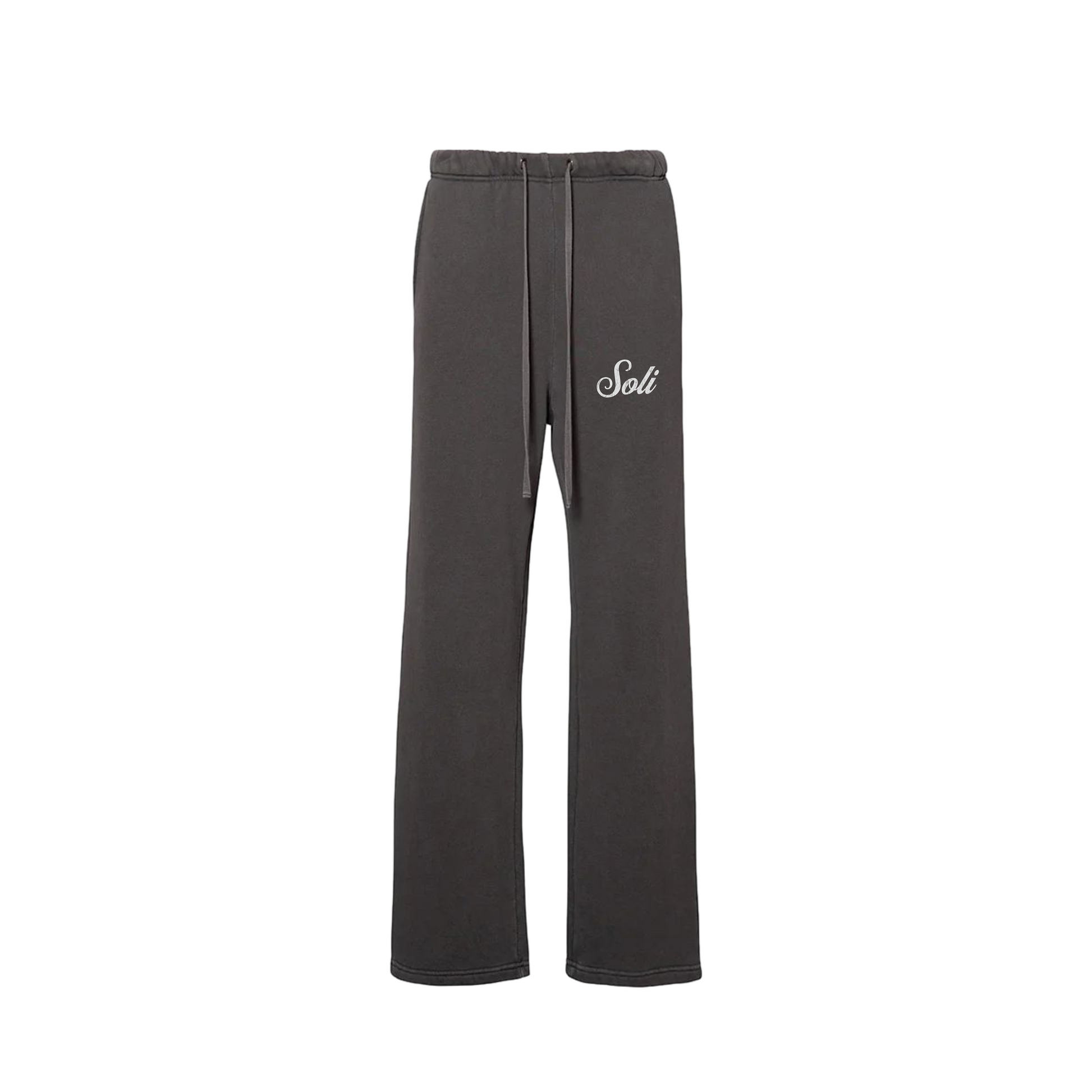 Ultra-cozy vintage sweatpants with baggy, oversized fit and distressed Soli embellishment.
